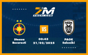 Trận đấu giữa Steaua Bucuresti và PAOK Saloniki vào ngày 21/02 lúc 00:45 tại đấu...